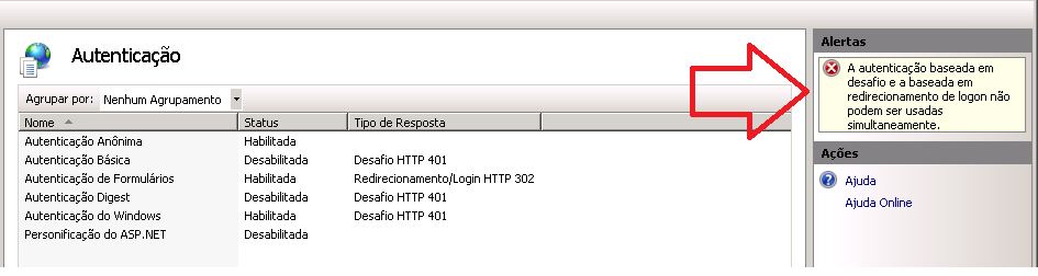 Se você entrar na configuração do seu IIS e a mensagem abaixo estiver sendo apresentada, realmente seu IIS precisa ser reconfigurado, portanto siga os passos acima.
