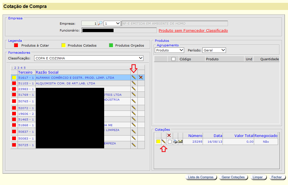 Também poderá consultar as últimas cotações, que será representado pelos orçamentos feitos e não fechados: