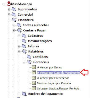 Para saber o quanto e quais títulos você tem para pagar em uma determinada data, basta emitir o relatório de A Vencer por Data de Vencimento do Contas a Pagar.