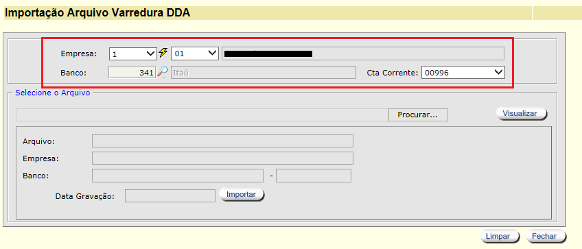 Importanto um arquivo de varredura do DDA ( Banco Itaú )
