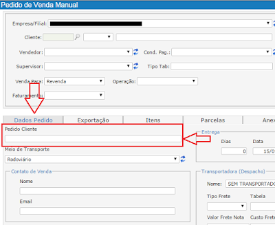 Informe o número do pedido do cliente na aba Dados Pedido