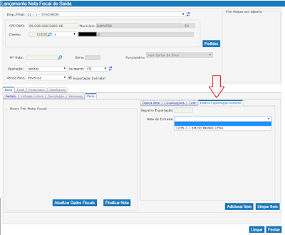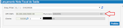 Nesta rotina você deverá selecionar o cliente, o qual deverá ser um cliente do exterior:
