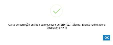 Nesse momento, a CC-e é emitida à SEFAZ e aparece na tela a seguinte mensagem de confirmação: