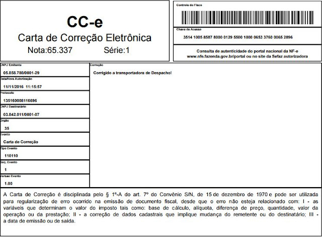 CC-e já vinculada à NF-e na SEFAZ.