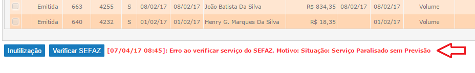 Quando tento enviar uma NF-e para o SEFAZ ou clico no botão Verificar SEFAZ da tela de Nota Fiscal Eletrônica, ele me retorna a mensagem “Serviço Paralizado sem Previsão”