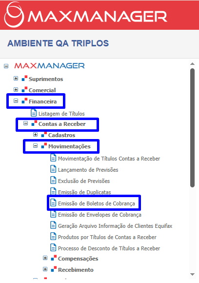 - No menu principal, localize a opção de “Emissão de Boletos de Cobrança”.