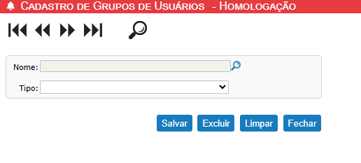 As Setas, no canto superior esquerdo, servem para transitar entre Cadastros de grupos, permitindo um fluxo mais simples caso a quantidade de grupos seja baixa.