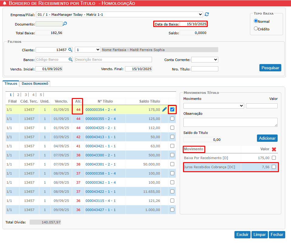 - Os valores de juros e multas (se configurados nos títulos).
