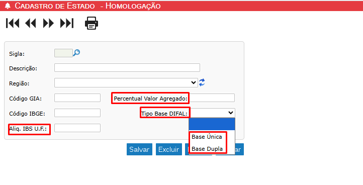 - A seleção entre Base Única e Base Dupla no sistema MaxManager na tela “Cadastro de Estado” deve ser feita com base na legislação do Estado que está sendo cadastrado, pois a Unidade Federativa de destino define qual método deve ser aplicado em seu território.