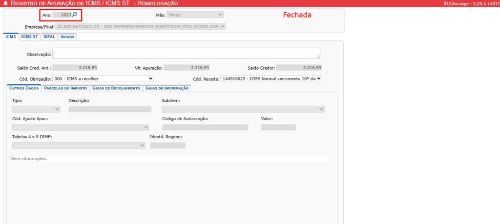2- Clique na lupa do campo Ano para localizar a apuração fechada, observe que este é o único campo ao qual você tem acesso;