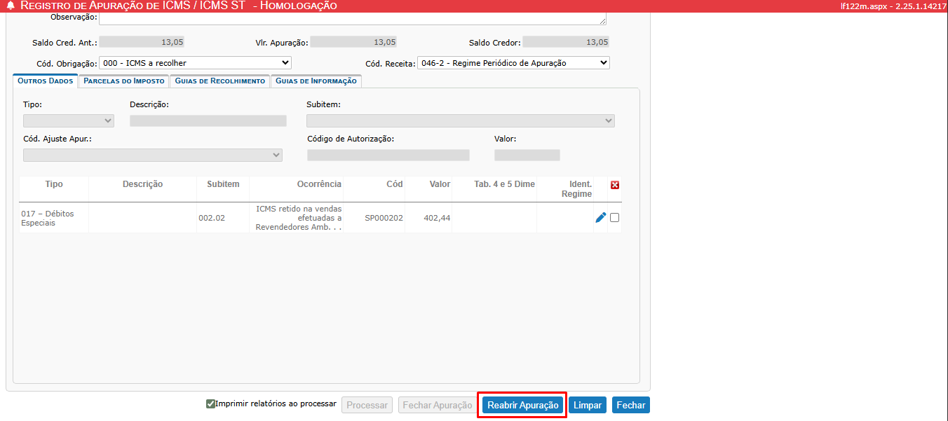 Para executar a reabertura da apuração, siga os passos abaixo: