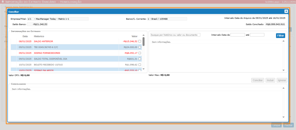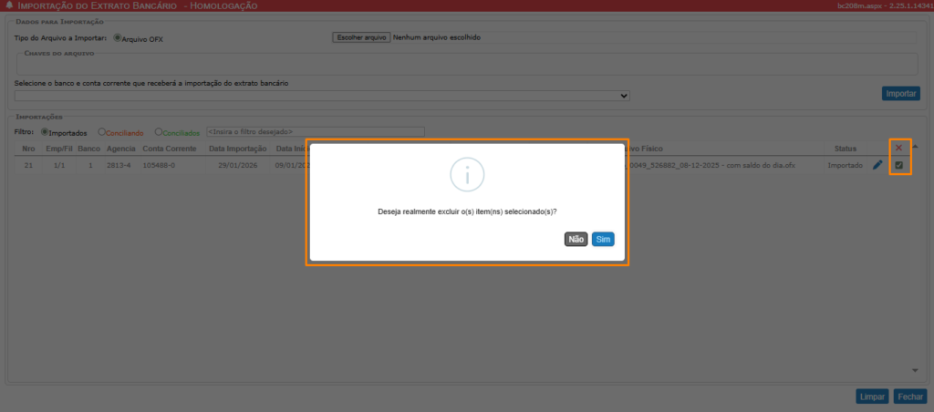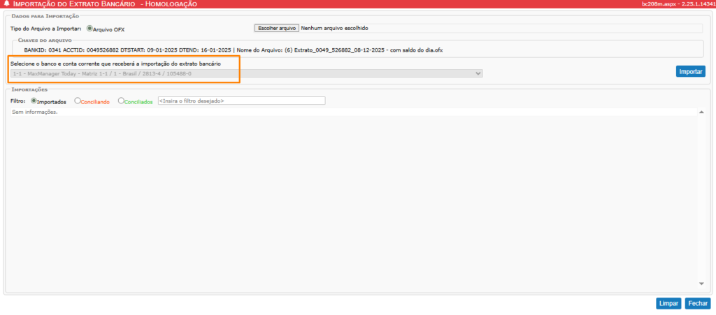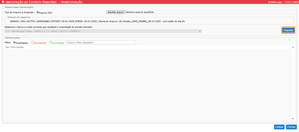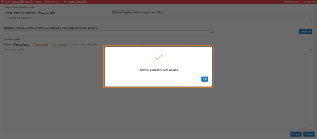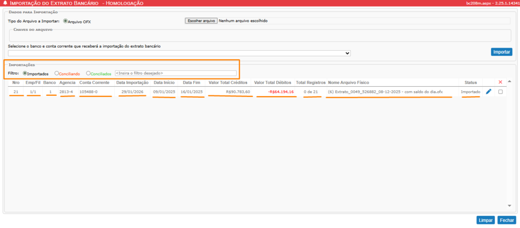 Guia Tela Importação do Extrato Bancário