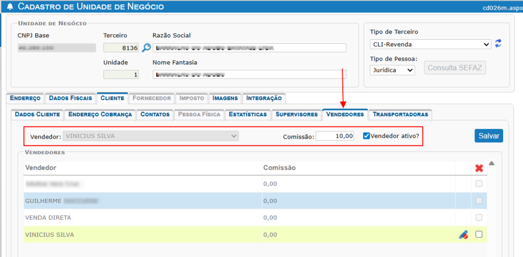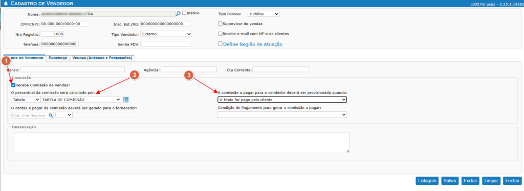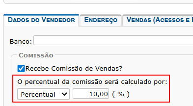 🧾 Cadastro do Vendedor e Configuração da Comissão
