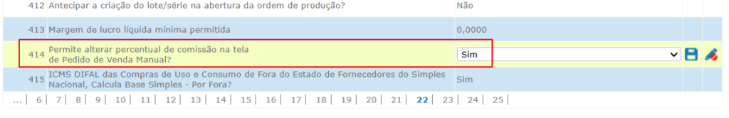 Permite alterar percentual de comissão na tela de Pedido de Venda Manual?