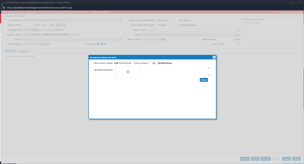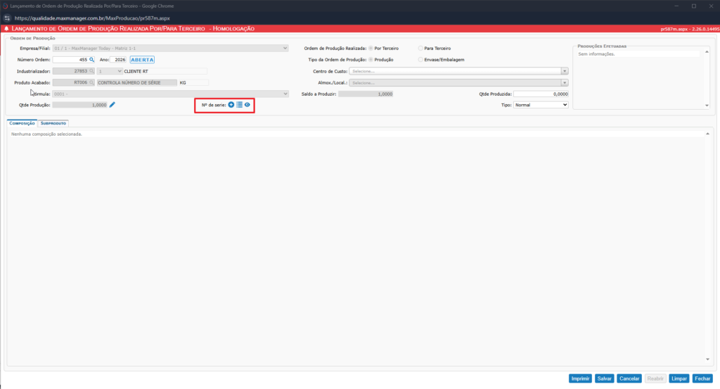 A partir da versão 2.26.0.14495 do MaxManager teremos a opção para confirmar os números de série na Ordem de Produção por Terceiro.