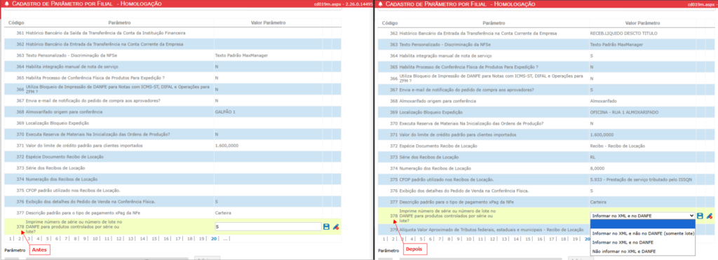 Como parte desta melhoria, o antigo parâmetro 279 foi descontinuado e substituído pela nova lógica do parâmetro 378, centralizando a configuração e evitando conflitos de informações.