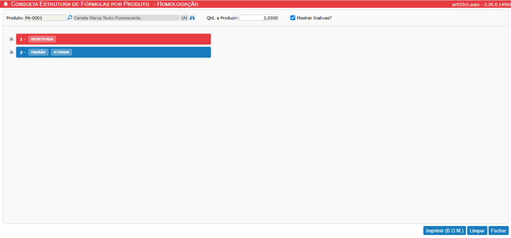 - 🔴 Vermelho: Identifica formulações Desativadas.